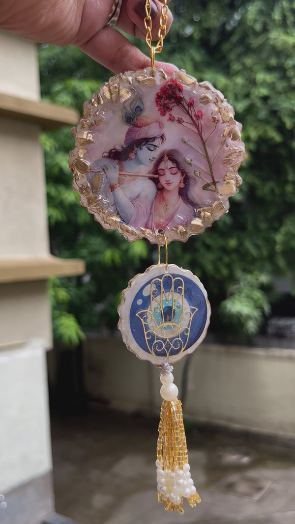 Each piece is individually crafted using high-quality resin, real dried flowers, and gold foil detailing. The designs feature Lord Krishna & Radha, Lord Ganesha, and sacred symbols like Hamsa, Om, and evil eye protection—all symbolizing love, prosperity, and spiritual protection.